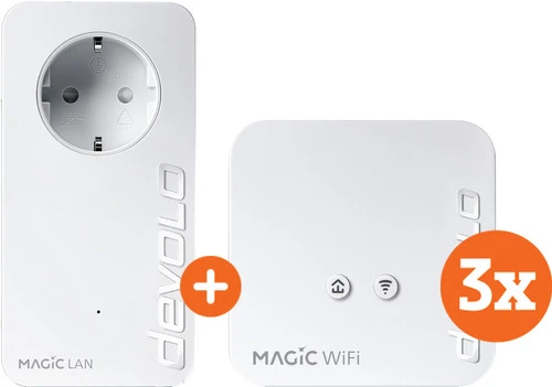 Breid je wifi netwerk uit met dit Devolo Magic 1 WiFi mini Multiroom pakket. Met deze set van 4 powerline adapters creëer je 3 extra wifi punten en netwerkaansluitingen in je huis. De powerline adapters communiceren met elkaar via een mesh netwerk, waardoor je altijd verbonden bent met het sterkste wifipunt in je huis. Zo ga je op 3 verdiepingen draadloos online en creëer je bovendien netwerkaansluitingen voor je smart tv, spelconsole of desktop computer. Het netwerksignaal loopt via het stopcontact, dus kabels trekken is overbodig.