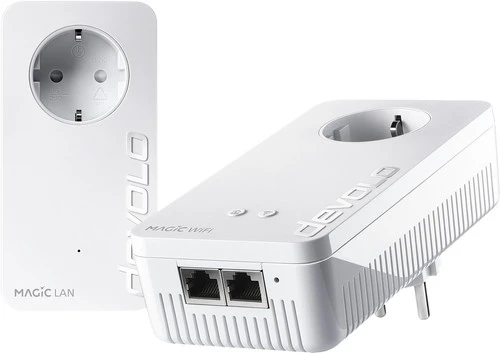 Voorzie je huis van een extra wifi punt met de Devolo Magic 1 WiFi Starter Kit. Met deze set van powerline adapters creëer je een hotspot en 2 extra netwerkaansluitingen in je huis. Zo kun je ook draadloos online in de slaapkamer, terwijl je jouw smart tv of game console via de netwerkkabel van internet voorziet. Het netwerksignaal loopt via het stopcontact, dus kabels trekken is overbodig.