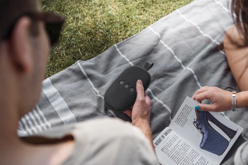 Je neemt de speaker zorgeloos mee naar het zwembad, omdat hij waterdicht is.