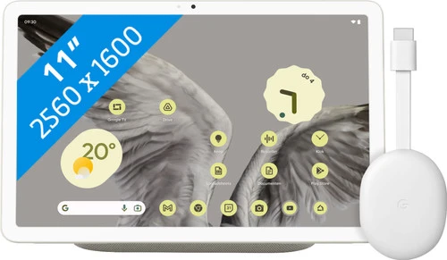 Deel je tabletscherm gemakkelijk en snel op je televisie met Google Pixel Tablet 256GB Wifi Crème + Chromecast HD met Google TV. Zo laat je bijvoorbeeld je vakantiefoto’s makkelijk aan je familie zien op je televisie. Deze Chromecast biedt wel minder kwaliteit dan Chromecast 4K. Door de ingebouwde speaker in de oplaaddock van Google Pixel Tablet luister je naar muziek in hoge kwaliteit. Bovendien is je Pixel Tablet altijd opgeladen. Met de Pixel Tablet bedien je gemakkelijk al je smart home apparaten. Je zet bijvoorbeeld je thermostaat hoger, zet je lampen aan of uit en ziet beelden van je slimme deurbel.
