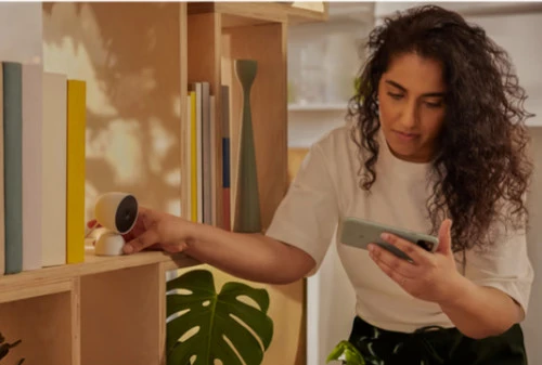 Bewaak een ruimte in je huis met de Google Nest Cam Indoor en kijk op je Pixel Tablet live mee.