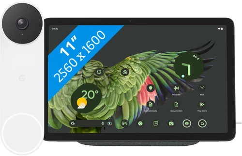 Bekijk de beelden van je Google Nest Doorbell Battery op je Google Pixel Tablet 256GB Wifi Grijs en Dock met Speaker. De deurbel installeer je bedraad of draadloos. Via de Google Home app op je Pixel Tablet krijg je een melding wanneer er iemand voor de deur staat. Door de ingebouwde speaker in de oplaaddock luister je naar muziek in hoge kwaliteit en je Pixel Tablet is altijd opgeladen. Ook geniet je van films en series in heldere kleuren. Je bedient gemakkelijk al je smart home apparaten met de tablet. Zo zet je bijvoorbeeld je thermostaat hoger of zet je lampen aan of uit. Ligt je tablet niet in de buurt? Met Google Assistent bedien je jouw apparaten met je stem.