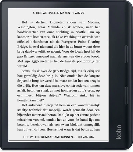 Door het formaat van deze e-reader lees je comfortabel en neem je hem ook gemakkelijk mee onderweg.
