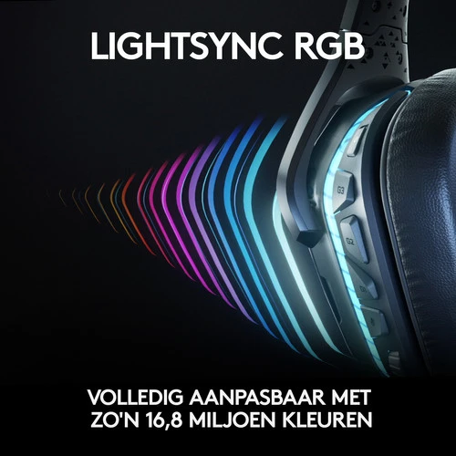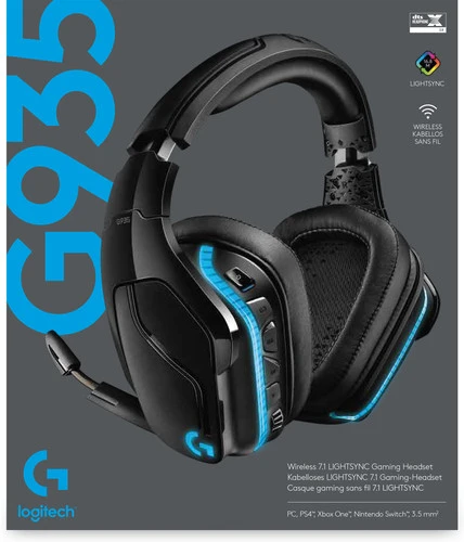 De Logitech G935 Wireless 7.1 Surround Sound Lightsync is een draadloze headset met DTS:X ondersteuning, gericht op serieuze pc en console gamers. De combinatie van 50mm drivers en het dimensionele geluid van DTS:X 2 (op pc) laat je namelijk goed concentreren op waar je tegenstanders zich bevinden. Je speelt maximaal 12 uur op één acculading, zodat je urenlang met je vrienden speelt. Op de oorschelpen vind je de bedieningsknoppen voor je multimedia, waaronder 3 programmeerbare G knoppen, zodat jij zelf bepaalt welke functies je altijd bij de hand hebt. De verlichting van de headset ondersteunt Logitech Lightsync, waarmee je de verlichting afstemt op je andere accessoires en bij ondersteunde games contextuele verlichtingspatronen mogelijk zijn.