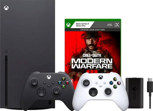 Pak je uitrusting en maak je klaar voor het gevecht in Call of Duty: Modern Warfare III op je nieuwe Xbox Series X met Play & Charge Kit. Speel klassieke maps met nieuwe missies samen vanaf de bank met een vriend en een tweede controller. Ook laad je jouw controller makkelijk op en game je draadloos verder. De Series X beschikt over een cd lade. Daarmee speel je al jouw games op cd. Dit geldt ook voor de meeste van jouw Xbox One games, want de Xbox Series X is backwards compatible. De Xbox Series X maakt gebruik van nvme SSD opslag, waardoor laadtijden korter zijn dan ooit. Daarnaast ondersteunt de console Direct X ray tracing, zodat games er nog mooier uitzien. Ook de verversingssnelheid van je beeld loopt op tot wel 144 frames per seconde wanneer je in full hd of quad hd gamet. Speel je in 4K, dan is de verversingssnelheid maximaal 120 Hz. Daardoor heb je geen haperend beeld en ziet de gameplay er vloeiend uit. Dit hangt ervan af welke game je speelt. Breid bovendien gemakkelijk het geheugen van de console uit met een geheugenkaart. Dat is een kaart die je in de Xbox plugt en het geheugen direct met de grootte van de expansion card uitbreidt. Zo heb je meer ruimte om jouw games op te slaan en updates te downloaden.