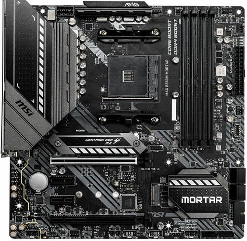 Voorzie je micro-ATX pc van een krachtige en nieuwe impuls met de MSI MAG B550M MORTAR. Dit moederbord is uitgerust met de AM4 socket en B550M chipset voor het gebruik met een 3e of 5e generatie AMD Ryzen processor. Je creëert tot wel 128 gigabyte aan werkgeheugen, verspreid over 4 DDR4 geheugensloten. Daarnaast heb je ruimte voor 2 M.2 NVMe SSD’s, die je in de PCIe 4.0 of PCIe 3.0 slots plaatst. Zo zijn lange laadtijden verleden tijd en zit je meteen in de lobby van je game. Ben je bang voor zaken als oververhitting? Geen zorgen, de verlengde heatsinks, software voor ventilatoren en ondersteuning voor een waterpomp bieden genoeg oplossingen. Zo blijven je componenten goed gekoeld en heb je minder kans op problemen. De 2.5 GbE LAN poort zorgt voor een extra snelle en stabiele bedrade internetverbinding. Games draaien sneller, streams spelen vloeiender af en je geniet over het algemeen van een constante verbinding.