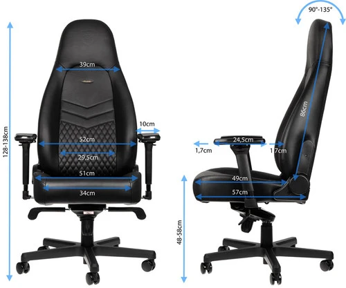 Wanneer je dagelijks urenlang aan je bureau zit zorgt de luxe noblechairs ICON Echtlederen Gaming Stoel voor luxe en comfort. Waar de meeste gamestoelen kiezen voor een smal kuipstoel ontwerp, gaat noblechairs met de Icon serie meer voor de brede, luxueuze executive look. De zitting en rugleuning zijn gevuld met ademend koudschuim en afgewerkt met echt leer en gedetailleerd stikwerk, wat zorgt voor steun, verkoeling en een luxe uitstraling. Het stevige frame is een mix van staal en aluminium en een gasveer die tot 150 kg ondersteunt. De armleuningen zijn in 4 dimensies te verstellen, zodat je samen met de meegeleverde nek- en rugkussens de optimale zithouding aanneemt.