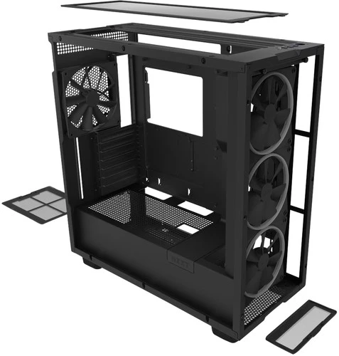 Plaats al je componenten in de NZXT H7 Elite – Black – 2023 Model mid-tower computerbehuizing. Zo stel je jouw gedroomde ATX, Micro-ATX of Mini-ITX setup samen. Bij deze case krijg je 3 F140 RGB Core ventilatoren van 140 millimeter en een standaard F serie ventilator van 140 millimeter. De F140 RGB Core ventilatoren installeer je achter het frontpaneel. Met de gratis meegeleverde RGB en fan controller pas je de RGB verlichting en prestaties van de ventilatoren naar wens aan. Het gegaasde toppaneel van de kast zorgt voor een extra goede luchtstroom. Hierdoor blijven je componenten goed gekoeld. Veel gedoe met kabels? Met het kabelmanagement in de kast houd je al je kabels netjes bij elkaar. Daarnaast open je de kast zonder gereedschap, waardoor je altijd gemakkelijk een nieuw component erin prikt.