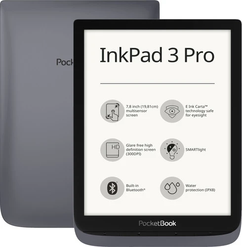 Met de waterbestendige Pocketbook Inkpad 3 Pro Zwart lees je overal je favoriete digitale boeken, ook in bad of aan het strand. De helderheid en kleurtemperatuur van het scherm stel je precies in zoals jij het wilt via SMARTlight. Zo is de schermverlichting erg rustig voor je ogen. Het 7,8 inch E-ink scherm is ook energiezuinig. Hierdoor hoef je de Inkpad 3 Pro slechts om de paar weken op te laden. Op het 16 GB opslaggeheugen heb je ruimte voor duizenden boeken. Sluit via bluetooth of de meegeleverde adapter je hoofdtelefoon aan en luister naar audioboeken, muziek of podcasts.
