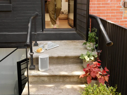 Hang de speaker ook buiten dankzij het roestvrije aluminium materiaal en de IP56-certificering.
