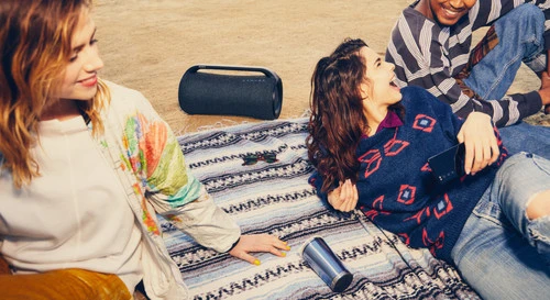 Het stof- en waterbestendige ontwerp maakt de speaker geschikt voor buitenshuis gebruik.