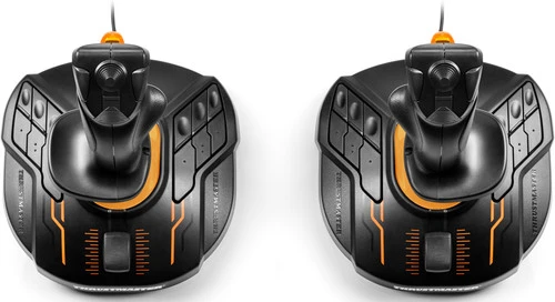 Ga de ruimte in met de Thrustmaster T.16000M FCS Space Sim Duo. Deze flightstick bestaat uit 2 T.16000M FCS joysticks met 16 actieknoppen en een 8-richtings POV hat switch. Je gebruikt deze joysticks tegelijk met je linker- en rechterhand, waardoor je snel reageert tijdens je ruimtegevechten. De magnetische H.E.A.R.T technologie zorgt ervoor dat je flightstick lang meegaat en je altijd nauwkeurig reageert. Gebruik de Space Sim Duo in combinatie met de FCS joysticks, TFRP roerpedalen en MFD cockpit panelen en breidt je vlieg setup uit.