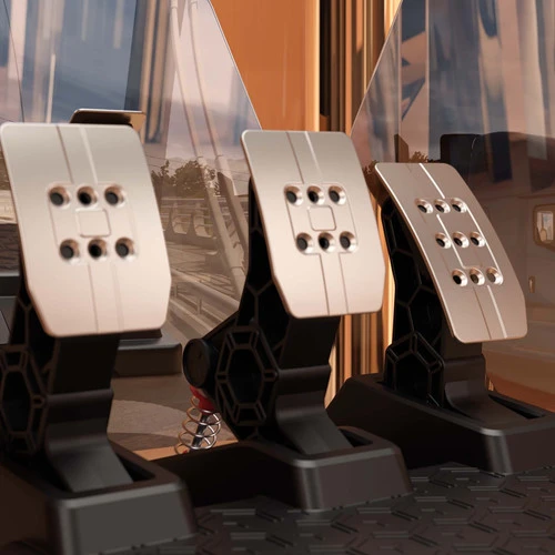 Het pedaalplatform heeft een gas-, rem- en koppelingspedaal, zodat je handmatig schakelt.