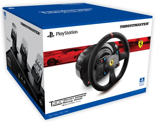 De Thrustmaster T300 Ferrari Integral Racing Wheel Alcantara Edition. Dit is al snel een mond vol. Maar dan heb je ook wat. Namelijk een Servo Base, een T3PA-pedaalset en een Ferrari 599XX EVO-stuurwiel. Dit laatste is een replica op schaal van 8:10 van het stuur van de gelijknamige Ferrari-bolide. Maar terug naar de basis. De T300 Servo Base welteverstaan. Deze heeft een borstelloze motor die zonder vertraging in-game actie vertaalt in force feedback-effecten. Een wrijvingsloos mechanisme met twee riemen, dat garant staat voor een vloeiende maar bovenal stille werking. En Thrustmasters contactloze magnetische H.E.A.R.T.-sensor die interne slijtage geen kans geeft.