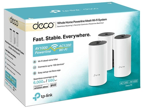 Met de TP-Link Deco P9 voorzie je jouw huis van een snelle en betrouwbare wifi verbinding. Deze set bestaat uit 3 stations met hybride powerline verbinding. Daardoor communiceren de stations ook vlot met elkaar als deze verder van elkaar verwijderd zijn. Zo heb je echt overal in huis wifi. Bovendien zorgt de combinatie van powerline- en draadloze verbinding voor een hogere internetsnelheid in huis. Dankzij de krachtige processor ga je zelfs met meer dan 25 apparaten tegelijk online zonder dat het signaal instabiel wordt. Via de overzichtelijke app stel je eenvoudig geavanceerde opties in. Schakel bijvoorbeeld de ouderlijke controle in. Zo bepaal je wat voor sites je kinderen mogen bezoeken en wanneer zij online kunnen.