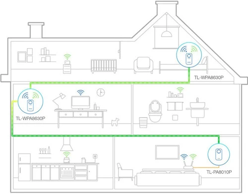 De TP-Link TL-WPA8631P KIT is de vernieuwde versie van de TP-Link WPA8630 powerline adapter. Hiermee creëer je een extra wifi netwerk in je huis op een plek waar je nu geen draadloze ontvangst hebt. Dat doe je simpelweg door de eerste adapter in het stopcontact te steken en te verbinden met je router. De andere adapter steek je in het stopcontact op de plek waar je een extra wifi netwerk wilt opzetten. Bijvoorbeeld op zolder of in het tuinhuisje. Dankzij de 3 netwerkaansluitingen op deze adapter sluit je ook probleemloos een bedraad apparaat aan. Bijvoorbeeld een smart tv of netwerkschijf. Door de geïntegreerde contactdozen, hoef je geen stopcontact te missen.