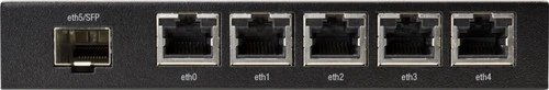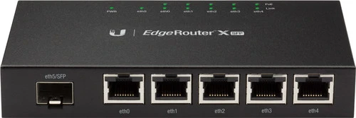 De Ubiquiti EdgeRouter Lite X SFP is een router met 5 PoE (24V) poorten en een SFP-poort. Gebruik de PoE poorten om andere PoE apparaten, zoals access points of ip-camera’s van stroom te voorzien. De 5 gigabit ethernetpoorten zijn volledig onafhankelijk van elkaar te configureren. De router is voorzien van het uitgebreide EdgeOS en volledig zelf te configureren. Bekjk de verbindingsstatus en de snelheid van de poorten of bekijk de statistieken op het dashboard.